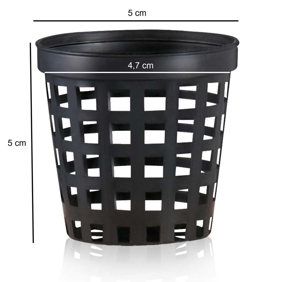 Netztopf für die Hydroponik zur Verwendung in hydroponischen Systemen, mit den Maßen 5 x 5 cm, mit einem Volumen von 0,07 Liter.